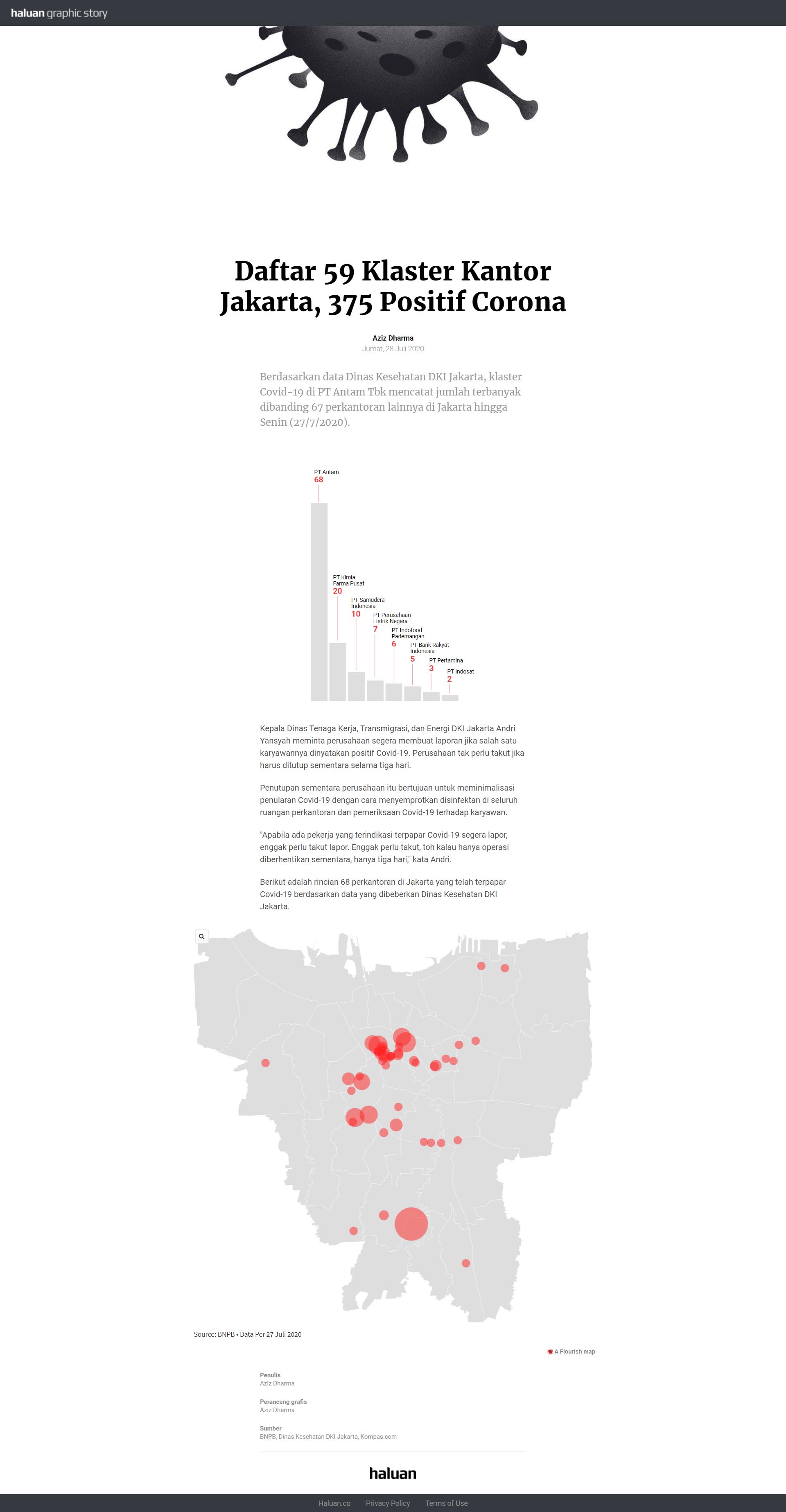Berdasarkan data Dinas Kesehatan DKI Jakarta, klaster Covid-19 di PT Antam Tbk mencatat jumlah terbanyak dibanding 67 perkantoran lainnya di Jakarta hingga Senin (27/7/2020).